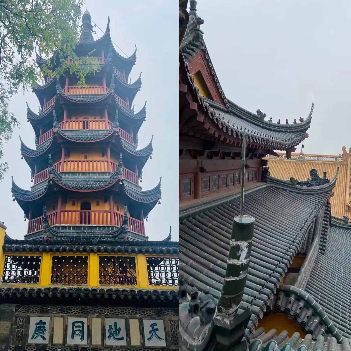 風景區建筑風格獨特,殿宇廳堂,亭臺樓閣,全部依山而建,加之慈壽塔突兀拔起于金山之面。寺院殿宇鱗次帶比,攢塔爭輝,從江中近望金山,只見寺廟不見山,故以“金山寺裹山,見寺,見塔,不見山”的風貌而蜚聲海內外。